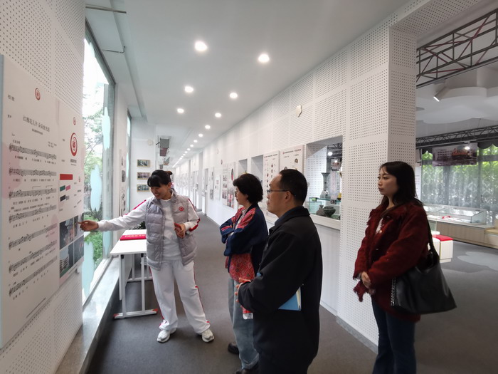 在王书记和叶校长的陪同下,师范学院领导团队首先参观了谢家湾学校的校园环境和教学设施。随后王书记介绍了谢家湾学校的历史、文化传承和办学理念“六年影响一生”“红梅花儿开,朵朵放光彩”“天天快乐,健康飞翔”。谢家湾学校在保障了国家美育课程之外,自主开发了发展学生素质教育的“小梅花”课程,其中有机融合了美育,校园环境也处处渗透美育,能够很好提升学生的审美能力。